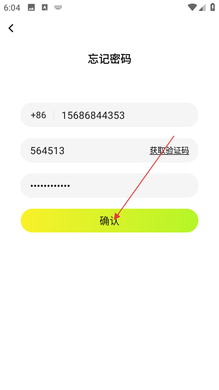 4、输入好手机号、验证码和新密码后,点击【确认】按钮,完成密码重置操作。