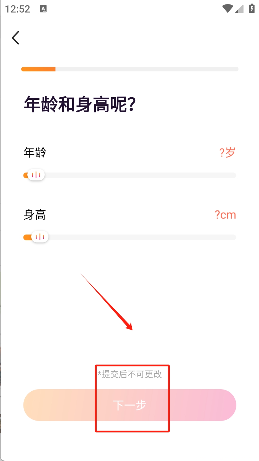 3、填写您的年龄和身高信息,点击下一步。在这一步中,您需要输入您的年龄和身高,然后点击下一步继续注册流程。