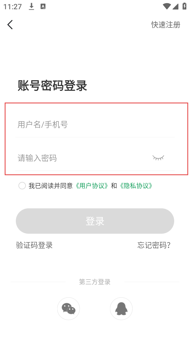 4、输入完成后,勾选同意用户协议和隐私协议后,点击【登录】按钮,完成登录流程。