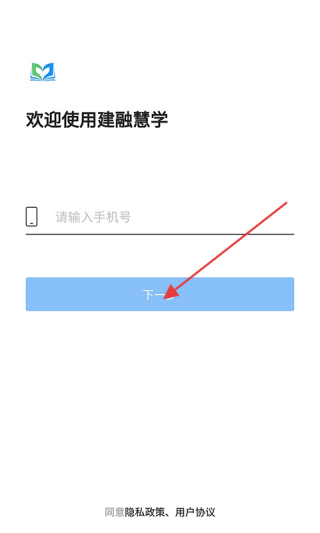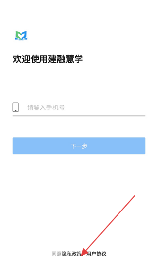 1、打开应用进入登录界面点击此处查看隐私政策。