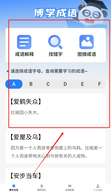 1、首先下载安装博学成语,注册帐号后即可开始畅快的成语学习之旅,享受全方位服务。