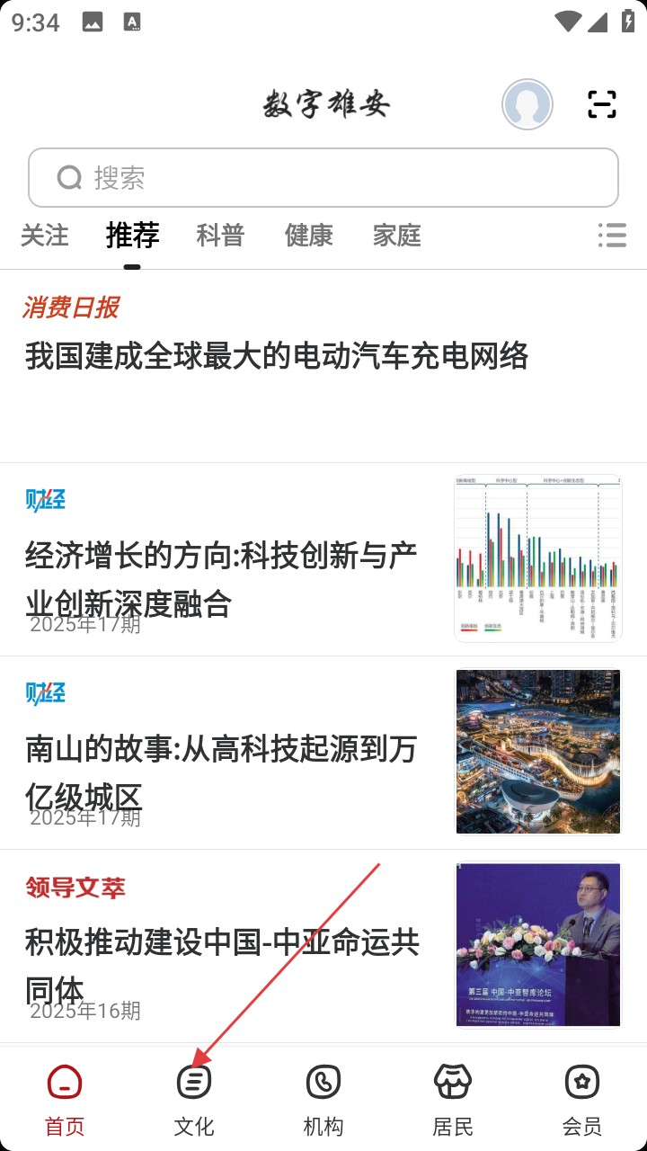 1、打开数字雄安,点底部【文化】,进入文化服务板块。