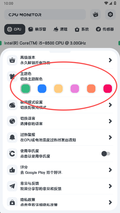 CPU 监测不仅功能强大,外观也十分精美,还支持多主题切换,用户能够挑选自己心仪的主题颜色。