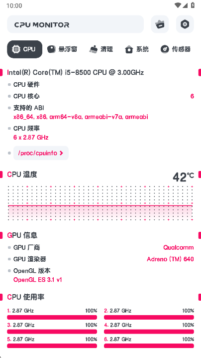 CPU监测是一款专业的性能监测工具,能为大家提供优质的监测服务。它支持用户随时查看CPU硬件等信息,带来专业的系统工具应用体验。此外,该应用还支持一键清理垃圾、加速网络状态等功能。有需要的朋友,现在就快来使用吧!