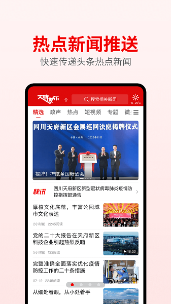 1、天府发布APP作为四川天府新区官方新媒体平台,汇聚本地权威资讯,24小时不间断更新时政要闻、民生热点、社区动态等内容,打造最全面的区域信息门户。