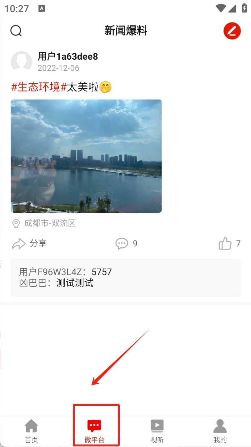 2、查看新闻爆料:点击“微平台”图标,浏览用户分享的新闻爆料和图片。