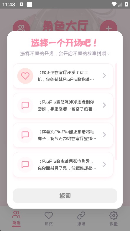 PiuPiu酱最新版,是一款超实用的AI虚拟陪伴应用。在这里,你能随心所欲地塑造专属虚拟角色形象,无论是外貌细节还是整体风格,皆可自由定制。应用还会记录你的喜好,据此为你打造更贴合心意的角色。丰富多样的玩法等你体验,从虚拟约会模拟,到各种新奇玩法的解锁,每一种都别具趣味。其二次元角色形象精致细腻,互动聊天玩法更是乐趣无穷,为用户带来顶级的虚拟聊天体验。自动化聊天互动玩法便捷高效,让你在闲暇时刻也能迅速开启互动。感兴趣的朋友,千万不要错过这款软件!