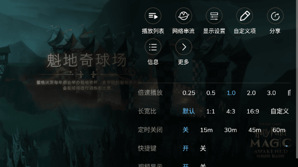 在播放过程里,点击菜单键便会弹出操作菜单,其中“显示”这一项涵盖了常用的显示设置,像屏幕方向、触摸动作以及屏幕显示信息等。此外,用户还能够对跳转时间间隔以及拖动支持的操作进行设置。