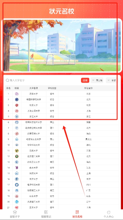 2、还提供了丰富的状元名校数据,能够让你一键查询高校数据,实时查询院校数据。