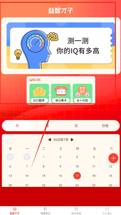 状元才子提供专业的智力提升训练和名校信息查询,致力于帮助用户有效测试和提高自身的思维能力,通过IQ测试与个性化训练方案,科学化地增强记忆力和综合素质,同时也可学习传统文化知识,随时制定学习计划,系统化掌握成语与院校信息。