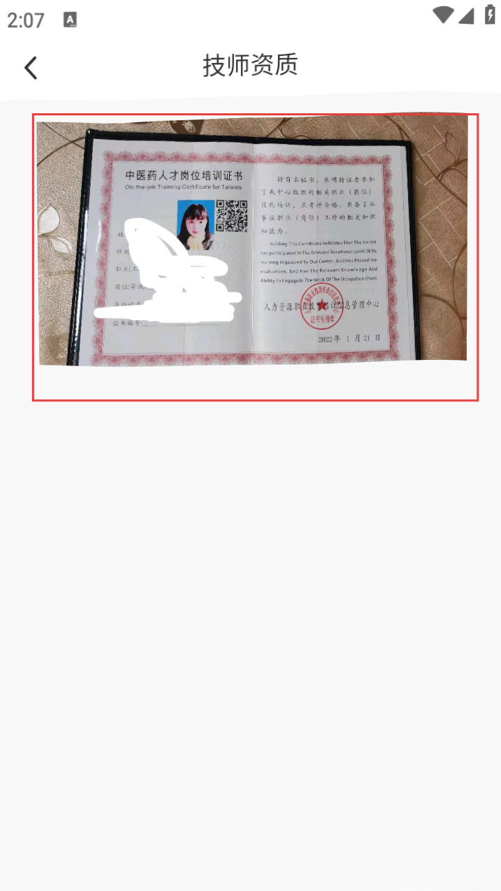 4、进入此页面,即可查看技师的证照信息。
