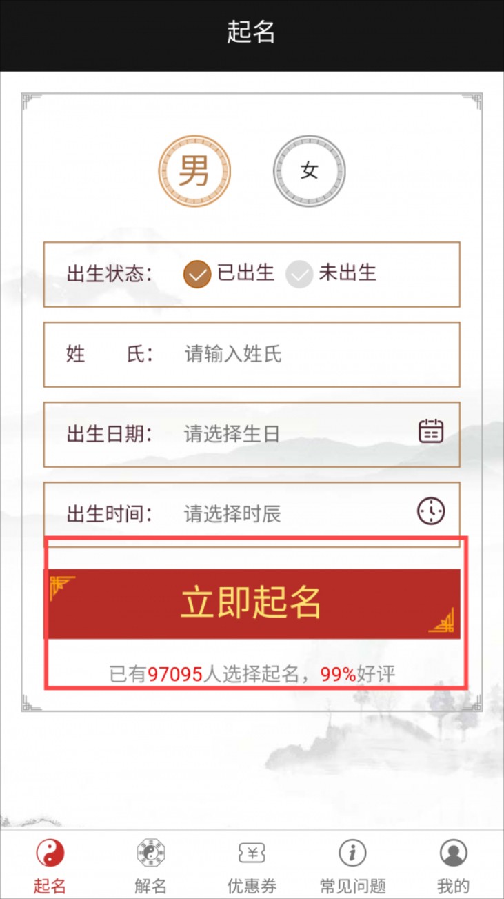 3、 切回 “起名” 页,填信息后点 “立即起名” 操作。