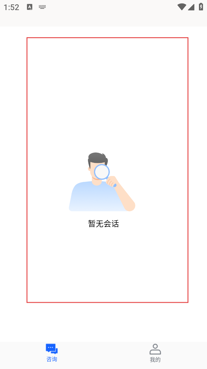 4、完成认证,进入【咨询】页,可处理会话,无会话时显示【暂无会话】。