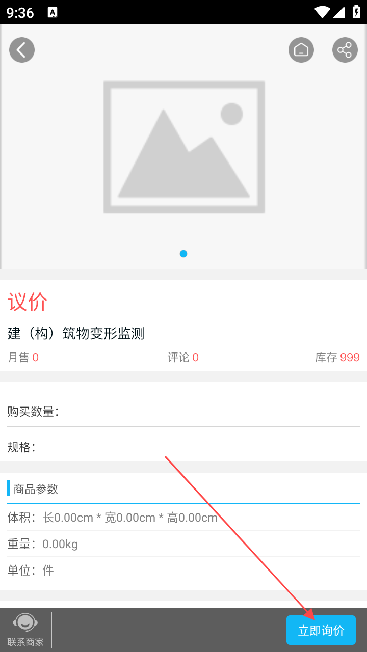4、选择心仪的商品,确认参数后,点底部【立即询价】,发起业务咨询。