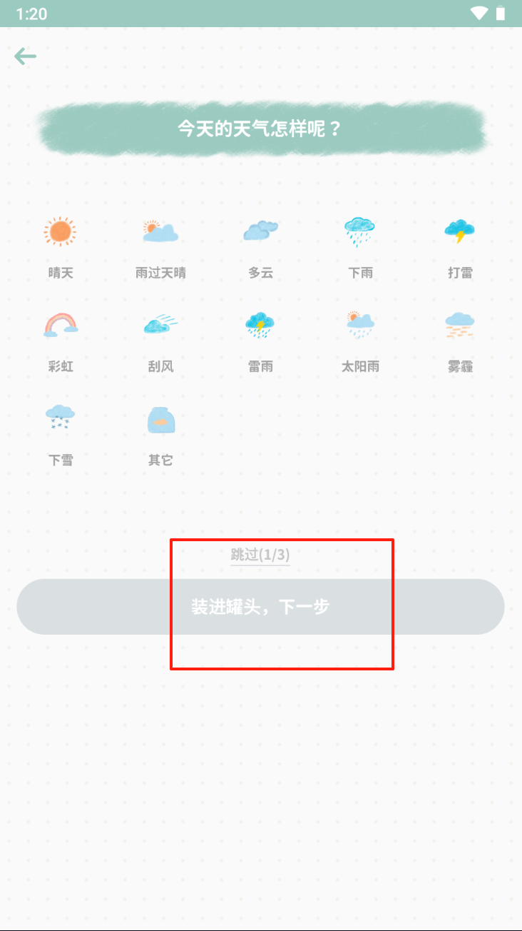 3、记录今日天气。选择天气图标,描述今天的天气状况。