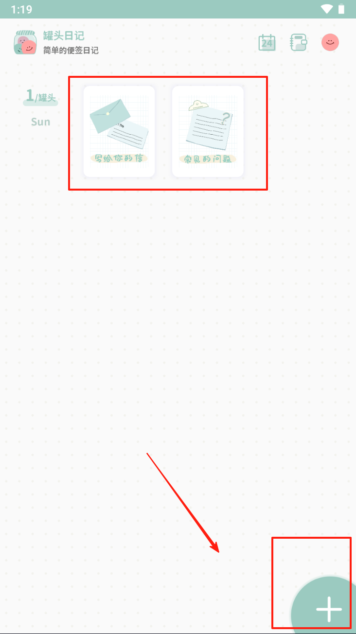 2、选择日记功能或常见问题。点击相应图标,开始记录或了解常见问题。