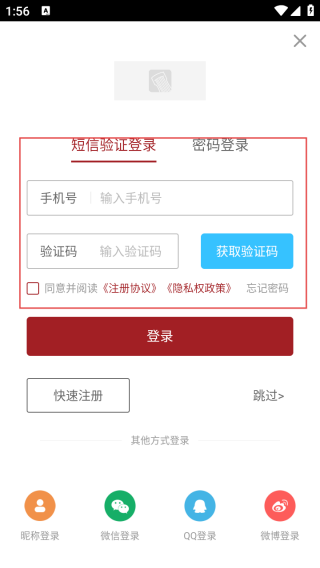 3、在登录页输入手机号和验证码即可登录。