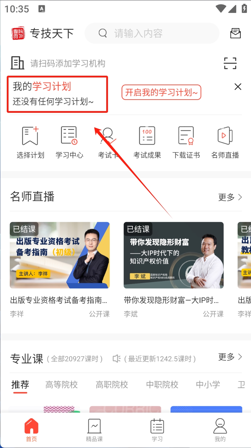 2、点击学习计划 查看并开启新的学习计划。