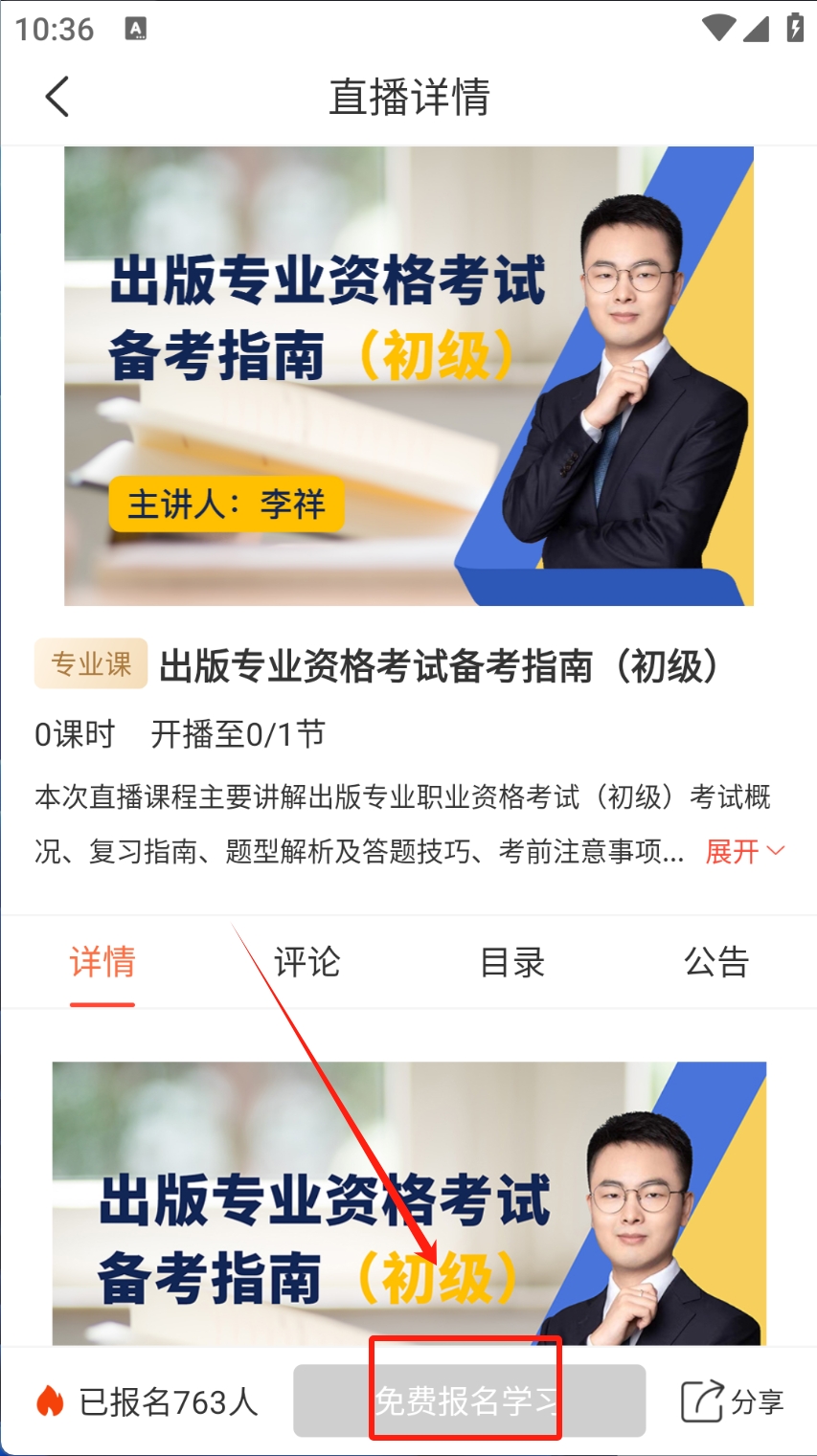 4、点击免费报名 参与直播课程学习。