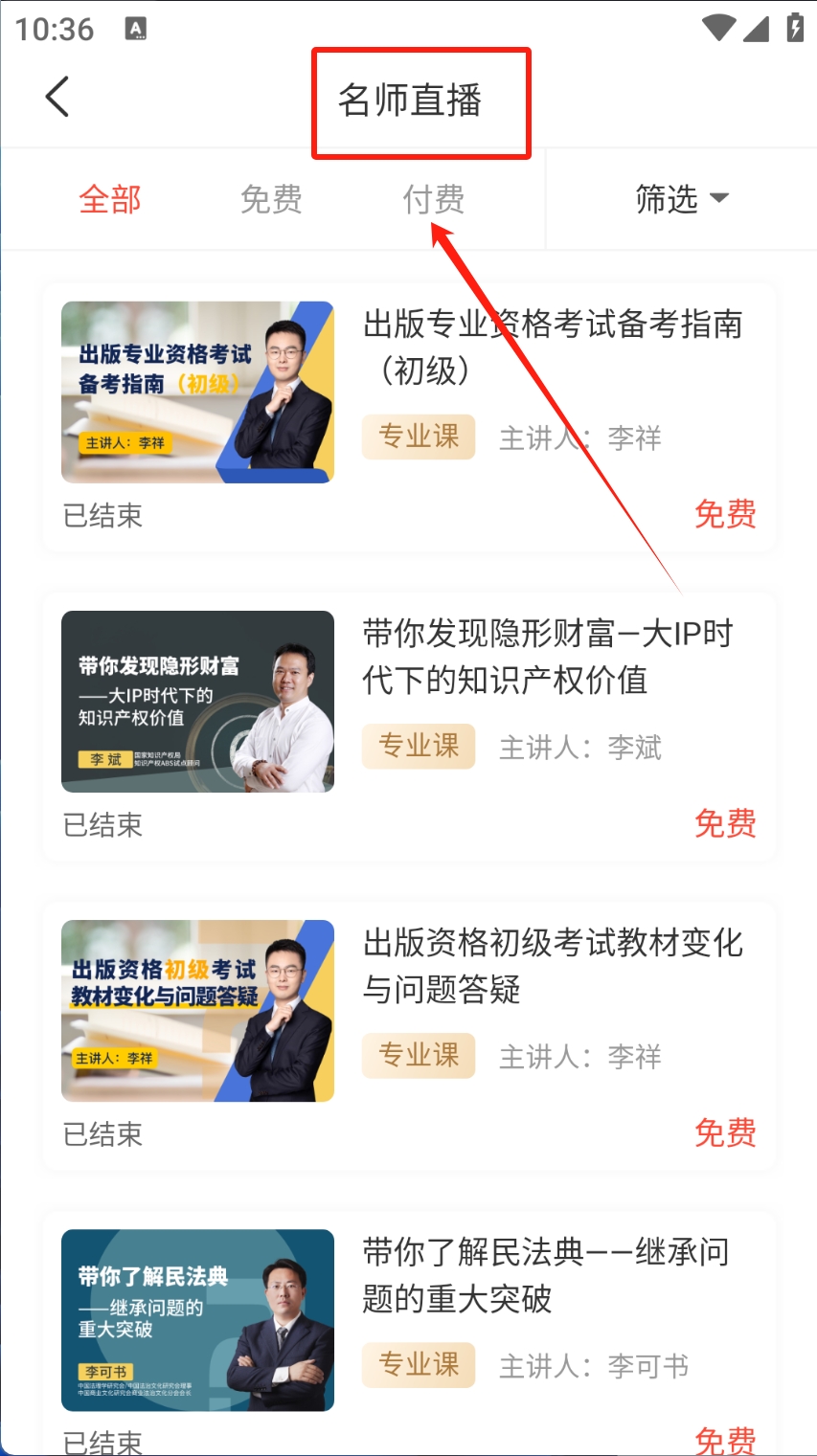 3、选择付费课程 查看并报名参与直播课程。