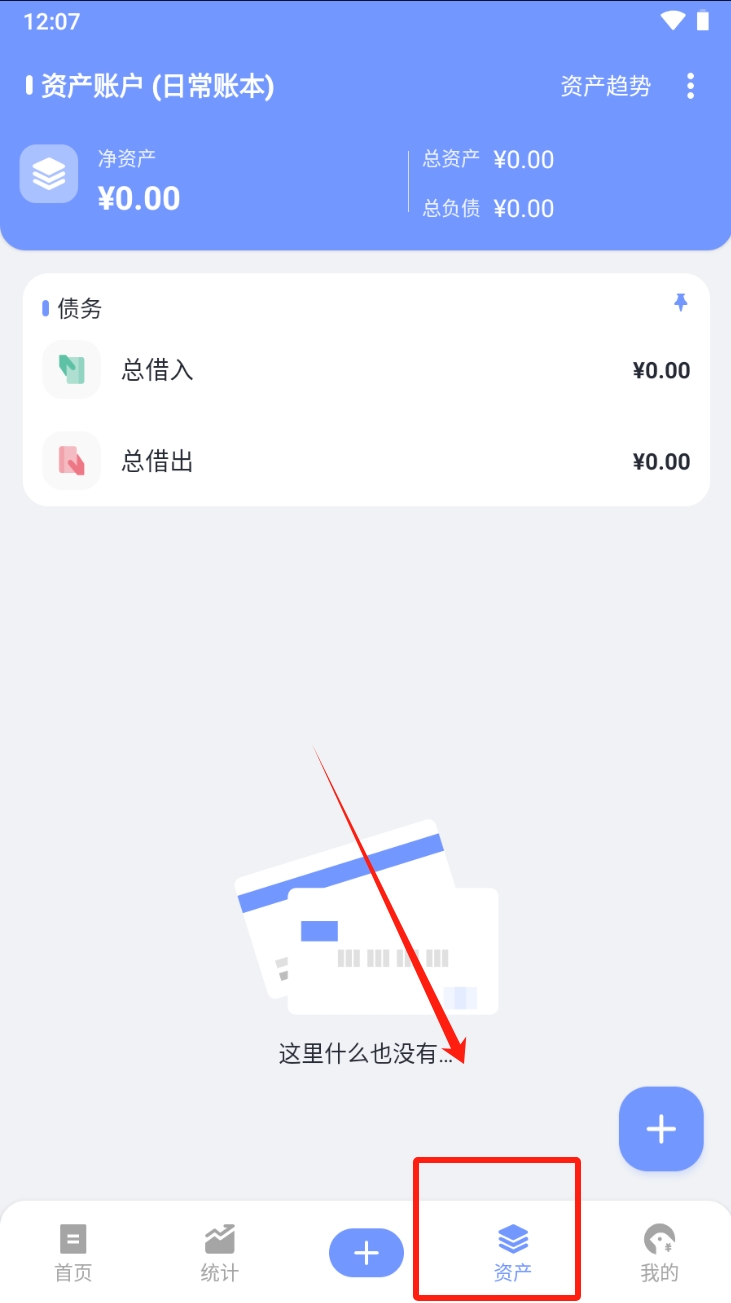 3、点击“资产”按钮,查看和管理您的净资产、总资产和总负债。