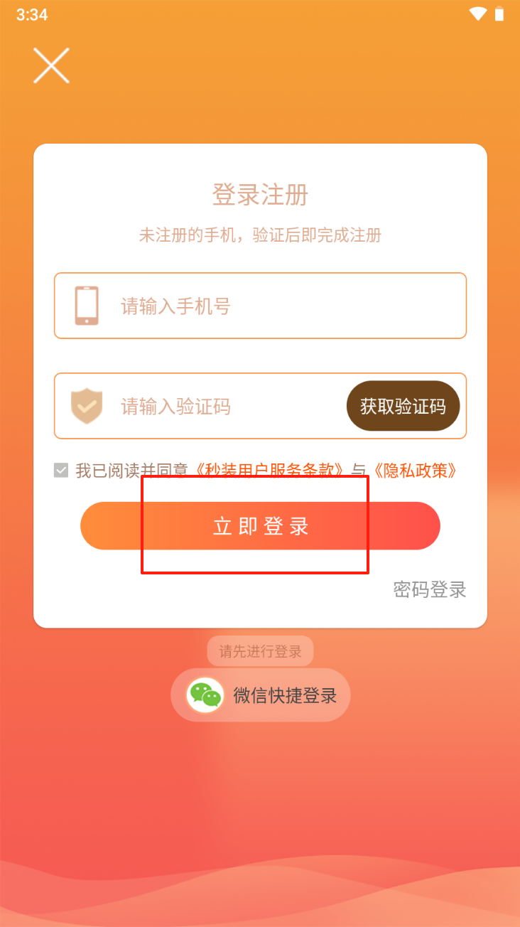 4、注册或登录账户。点击“立即登录”按钮,输入手机号和验证码完成注册。