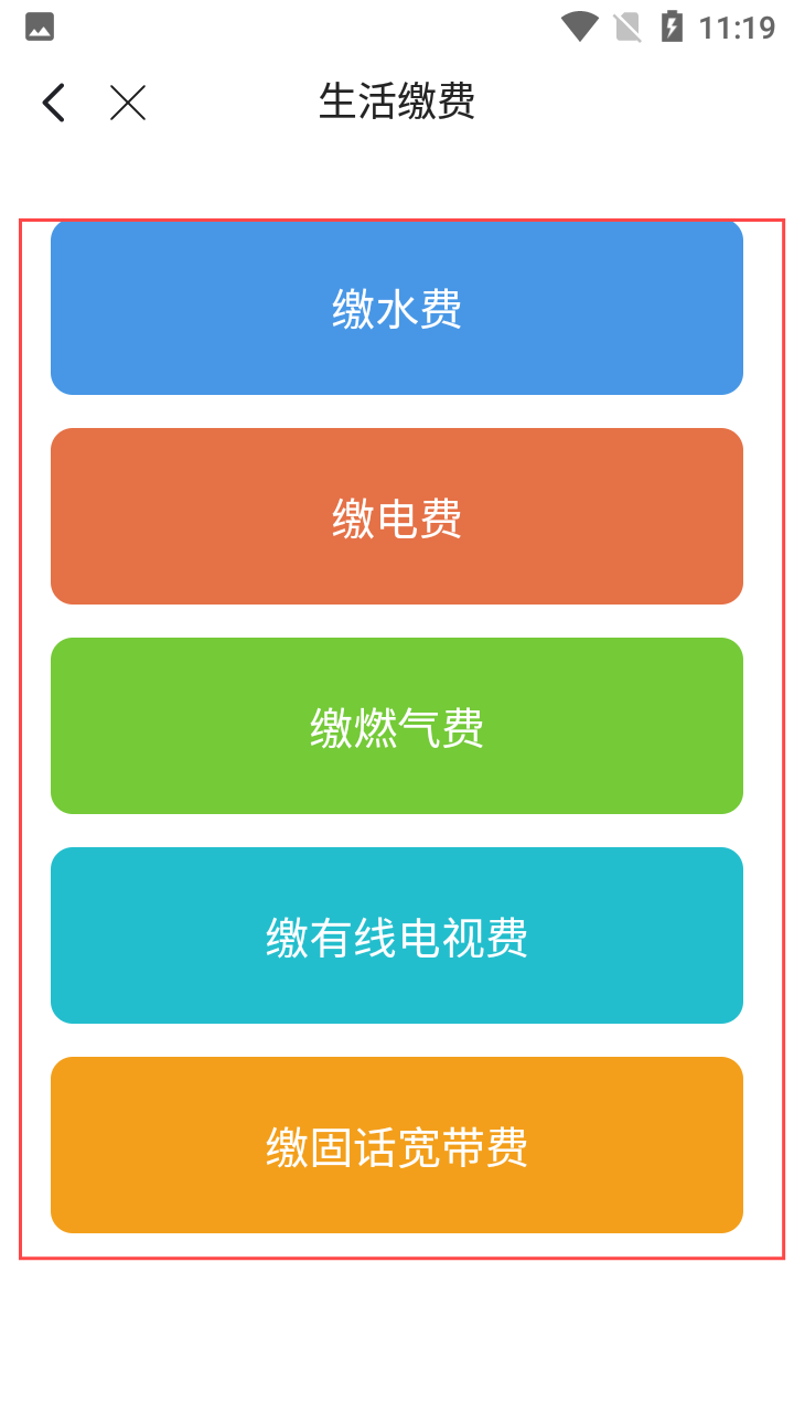 3、在生活缴费页,选要缴纳的费用类型,点对应按钮。