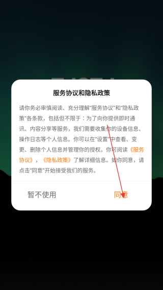 1、打开应用查看协议点击同意。