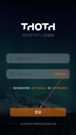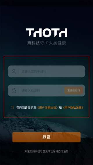 2、进入登录界面输入手机号和验证码。