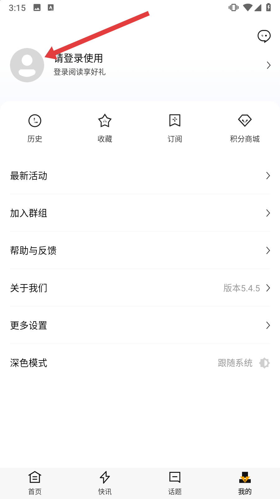 2、在个人中心点击头像处【请登录使用】进入登录页面。