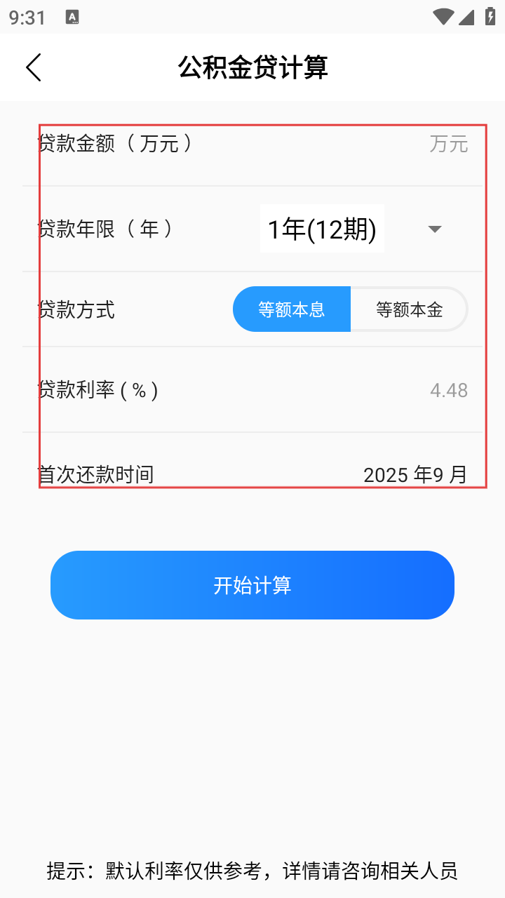 4、点击【开始计算】,即可得出公积金贷款相关结果。