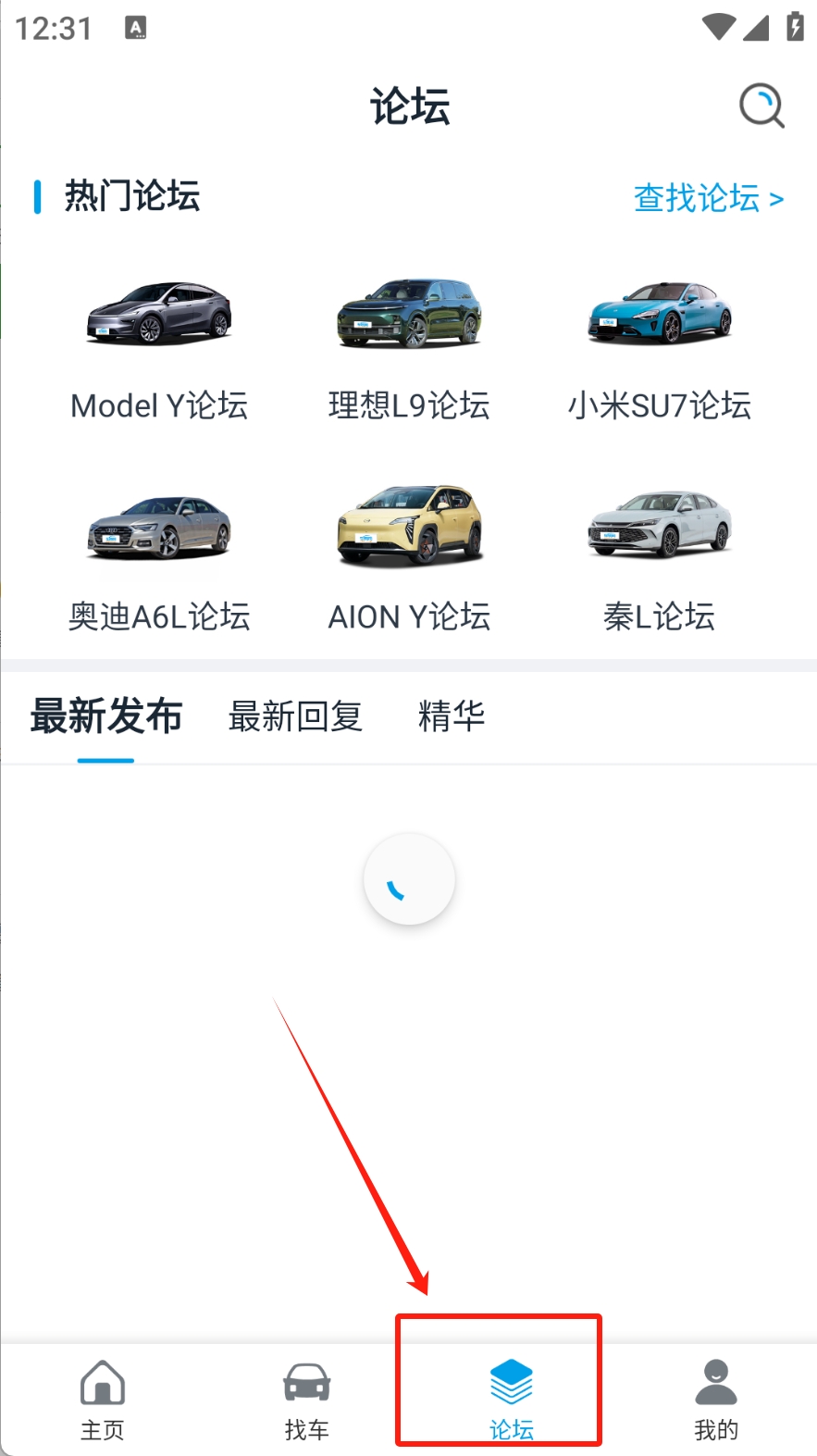 3、参与论坛讨论:点击底部导航栏的“论坛”图标,加入汽车论坛讨论。