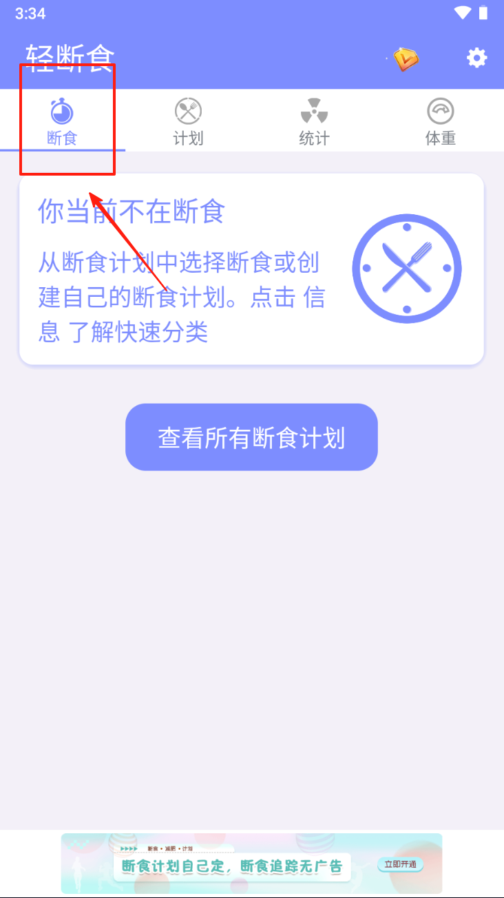 1、点击“断食”选项查看当前断食状态并选择断食计划。
