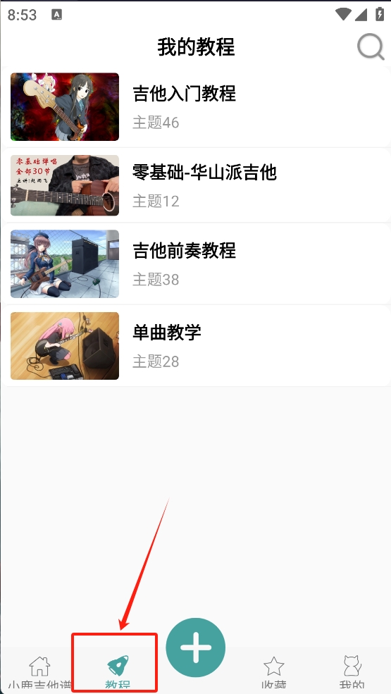 2、点击“教程”图标,查看并学习各种吉他教程。