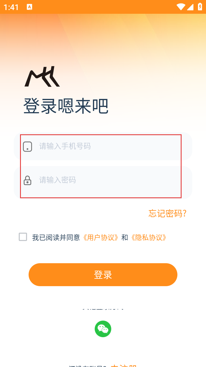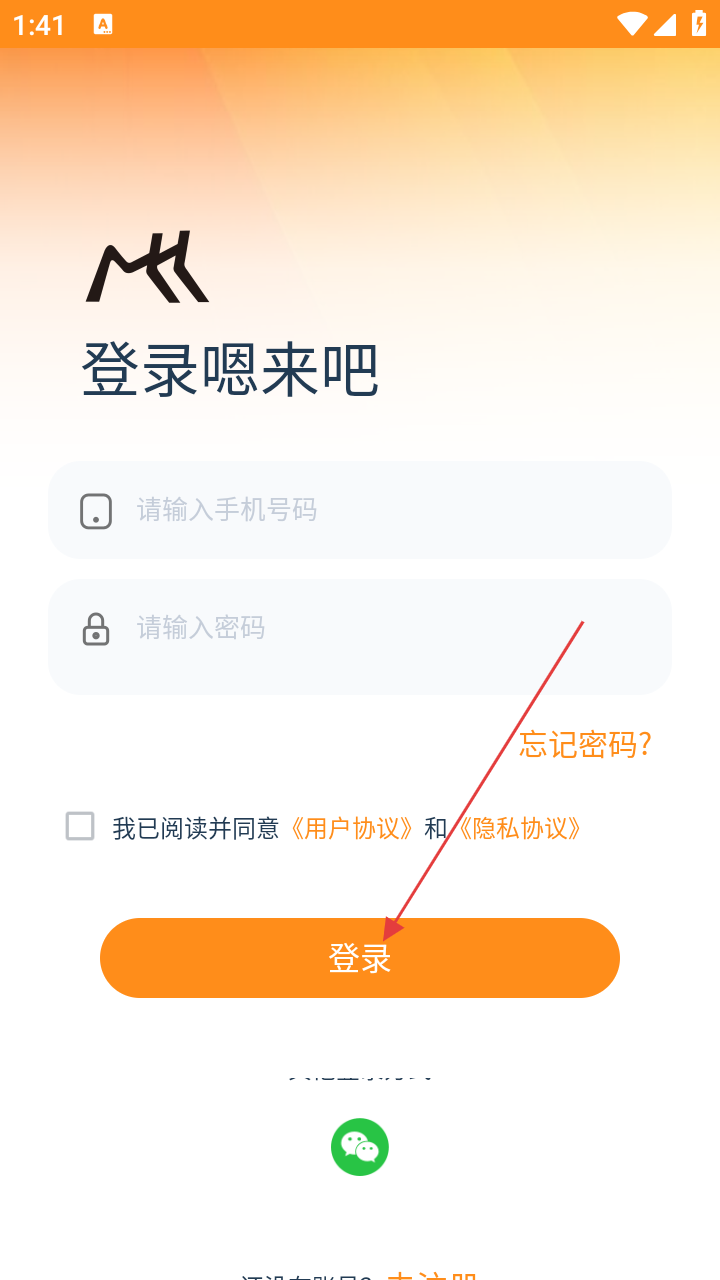 3、进入登录页面,输入手机号码和密码,勾选我已阅读并同意《用户协议》和《隐私协议》。