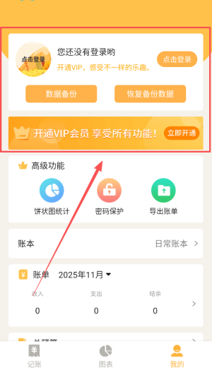 3、在首页查看各类统计图表,使用柱状图和饼图直观比较每月的收支情况,提升对财务状况的认知。