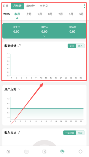4、用户可借助图表功能,查看历时消费数据,根据生成的报表分析自己的财务状况,做出理智的财务决策。