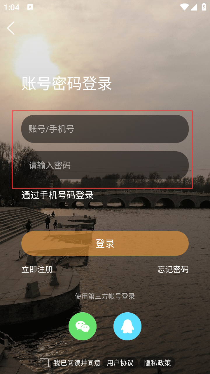 4、在对应框填入【账号/手机号】【请输入密码】,点登录完成操作。
