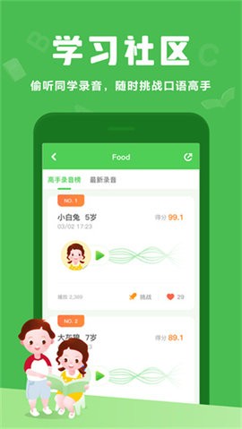 2.app中包含多个实景对话场景,孩子可以通过模拟对话练习口语表达,提高英语交流能力。