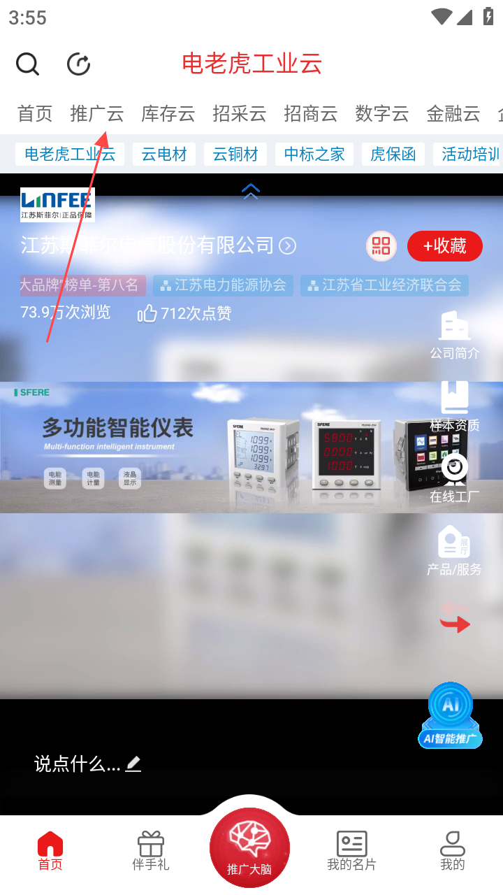 1、打开应用,点顶部【推广云】,进入推广云板块。