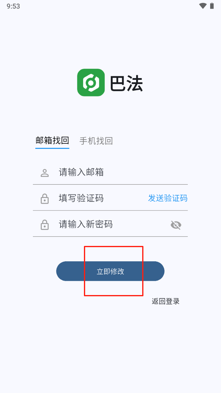 4、找回密码:输入邮箱和新密码,点击“立即修改”找回密码。。义,让居家生活更轻松智能。