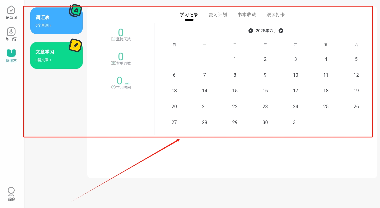 4、学习统计,实时记录学习进展,分析用户的学习数据,帮助制定下一步学习计划。
