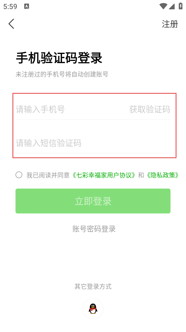 1、打开七彩幸福家,在首页点击右下角【我的】。