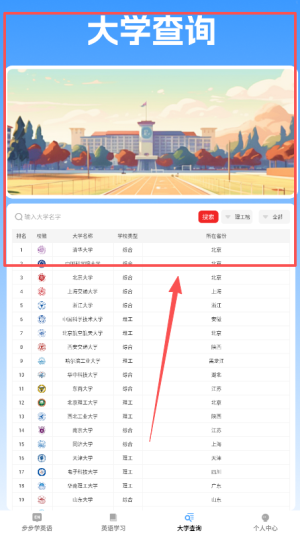 4、大学查询模块使用户能够便捷获取全国高校的信息,了解各自特点与招生情况,进行理性的选校。