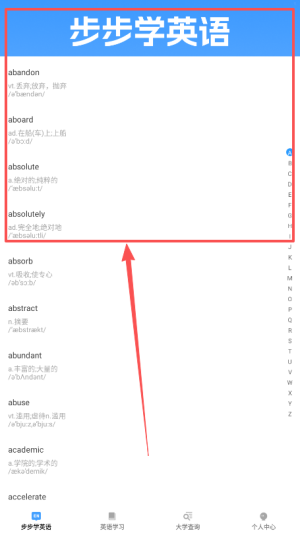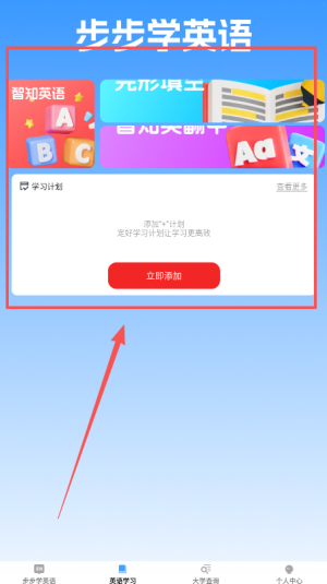 1、下载安装步步智知,完成注册后可直接进入首页,浏览丰富的英语学习资源,适合自己的学习内容开始学习。