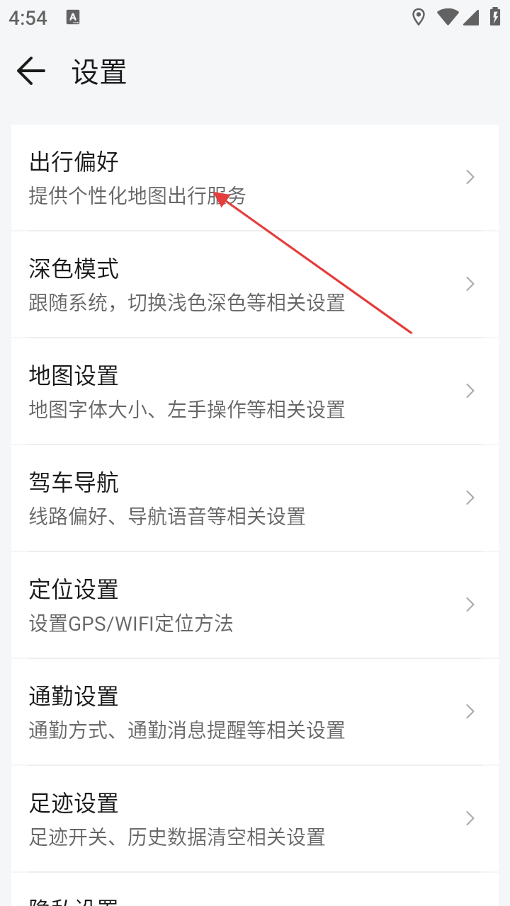 3、在设置页面,找到并点击【出行偏好】选项,进入出行偏好设置流程。