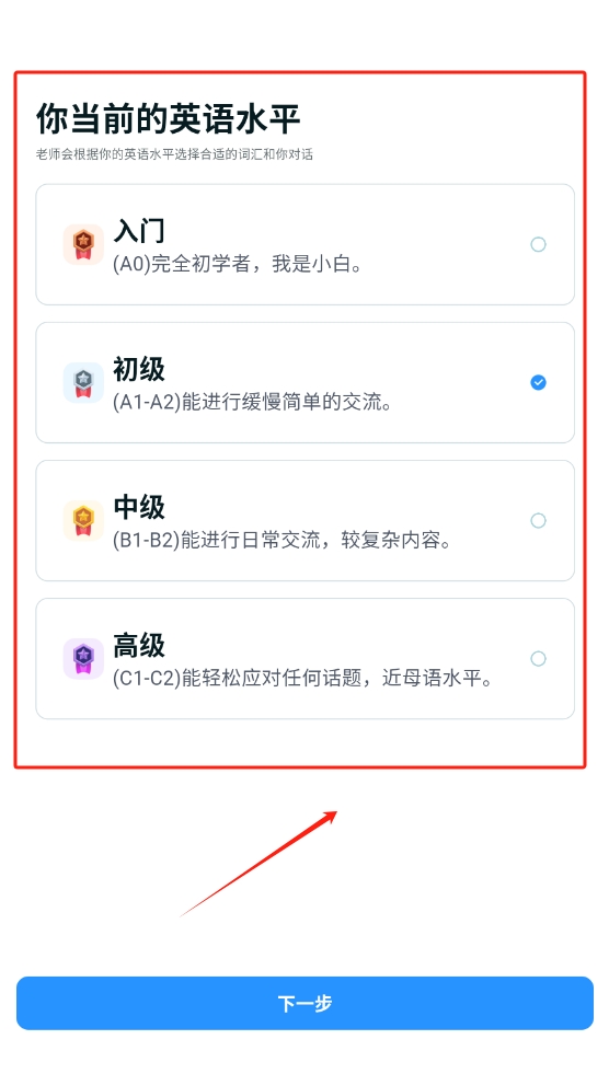 2、接着选择不同的练习场景,与AI外教进行对话,通过实时跟读提升口语表达的流畅度与准确性。