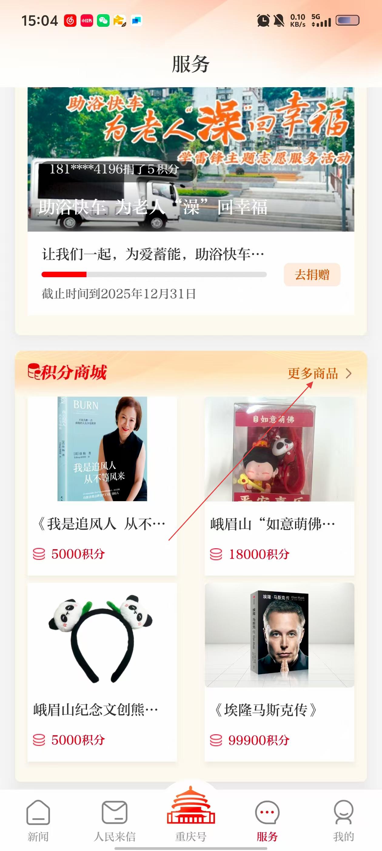 2、进入服务界面点击【更多商品】,进入商城界面。