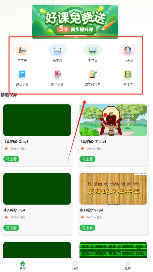 2、选择学习内容,可以浏览各类国学经典,观看视频课程,为深入理解国学打下基础,全面提升知识水平。