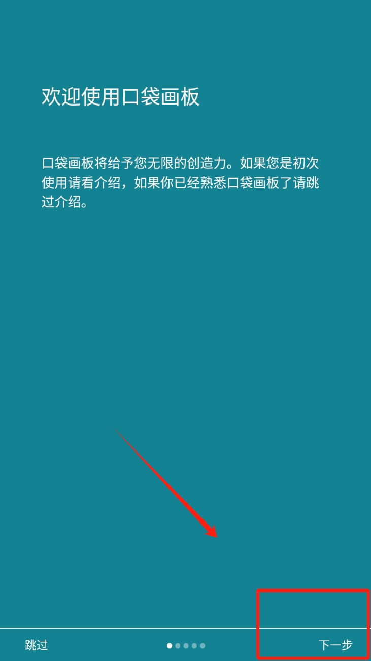 1、进入应用:点击“下一步”按钮,进入口袋画板应用。